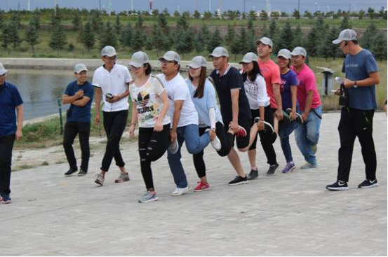 本次擴(kuò)展訓(xùn)練分別從德、智、體、美、勞五項(xiàng)趣味進(jìn)行了才藝大比拼。三組人員分別進(jìn)入各自的營地,將隊(duì)名、口號(hào)、隊(duì)歌寫在旗幟上規(guī)定時(shí)間內(nèi)展示給大家。令所有人都大跌眼鏡的是三組隊(duì)員的隊(duì)名如出一轍,完全一樣,他們都是—《戰(zhàn)狼隊(duì)》。隨后,戰(zhàn)狼三個(gè)隊(duì)展開了“肺活量大比拼”、“瞎子”背“瘸子”、“智能撲克傳遞”、“毛毛蟲速爬”、“燒烤比賽”等多個(gè)賽事。